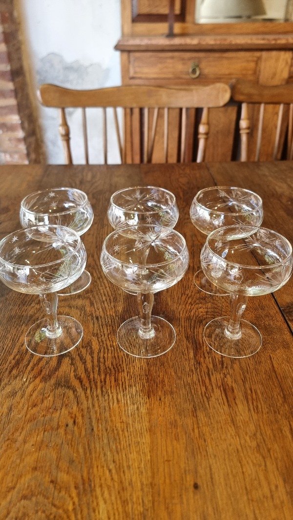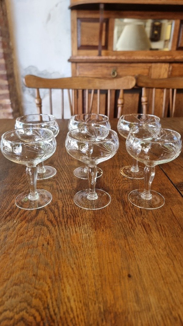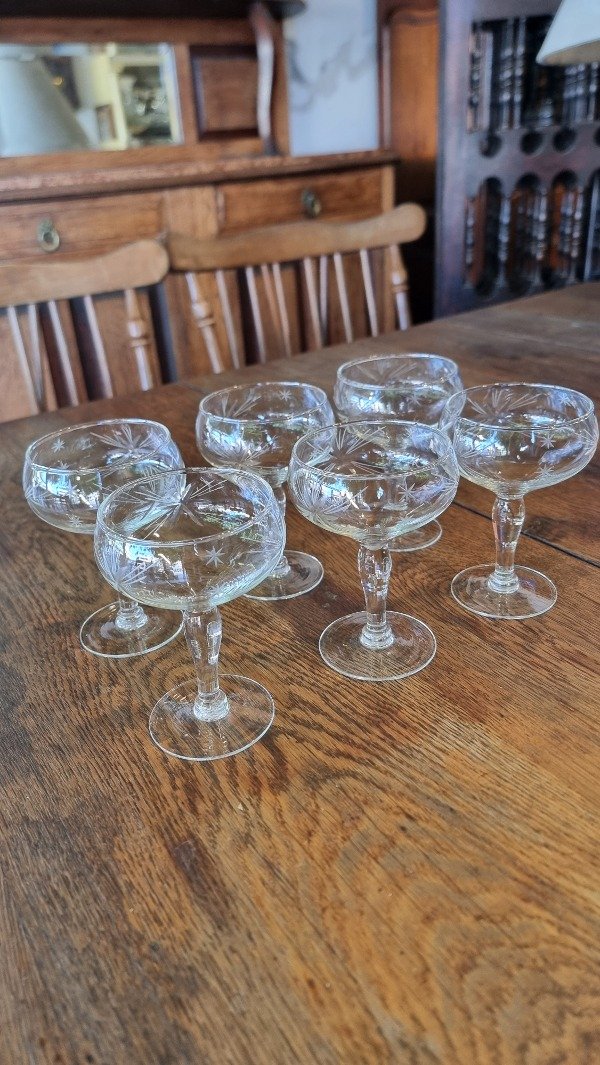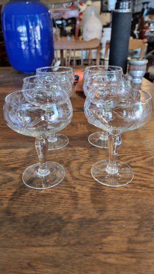 6 Copas de Brindis Talladas Para Sidra.