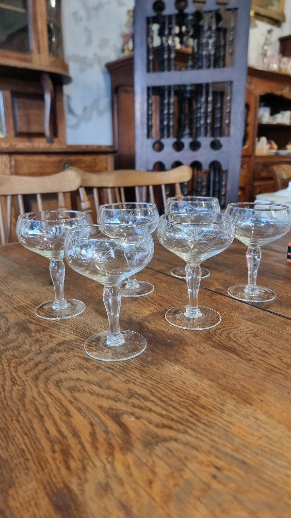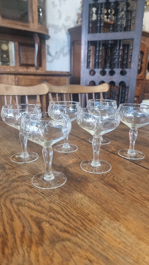 6 copas talladas para sidra.