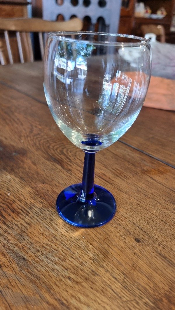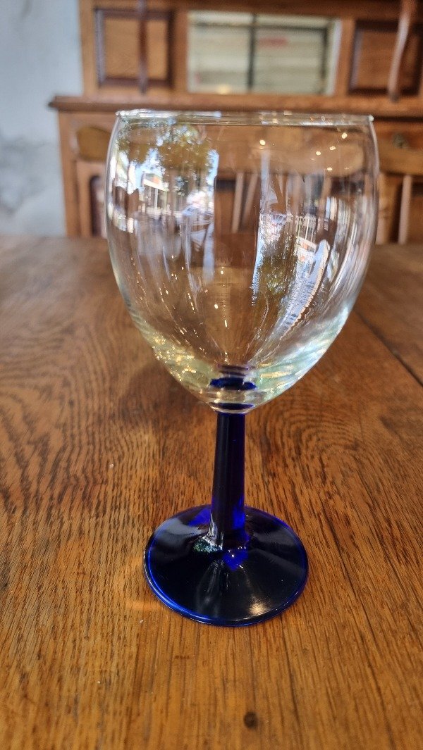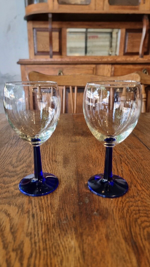 Duo de copas de cristal combinadas , transparente y azul. Preferentemente para Vino y/o agua.