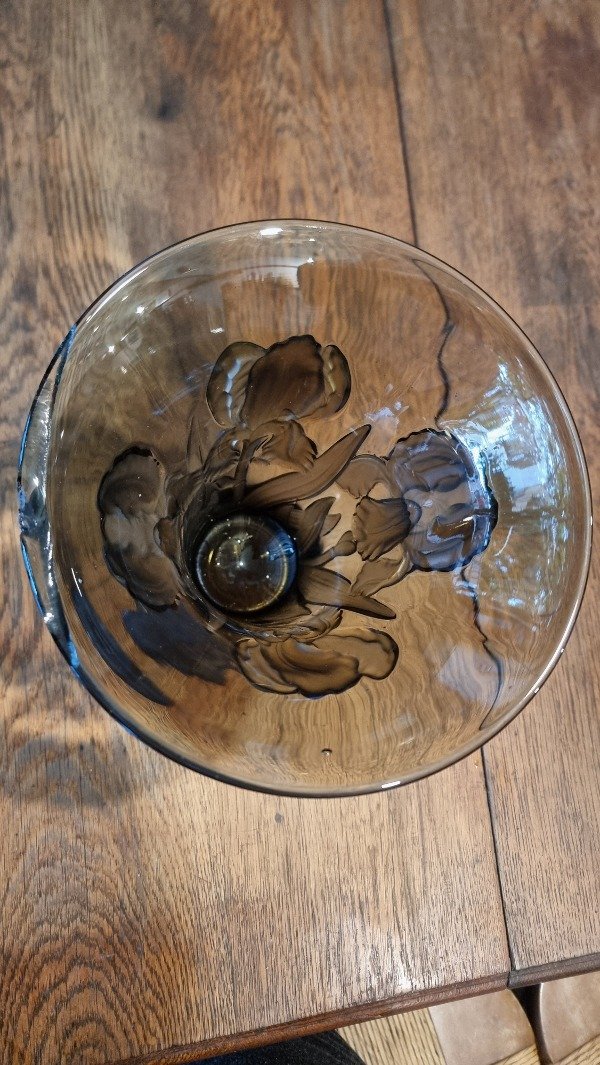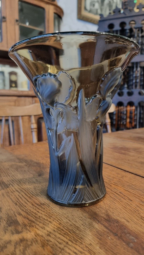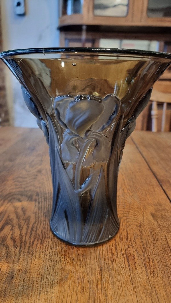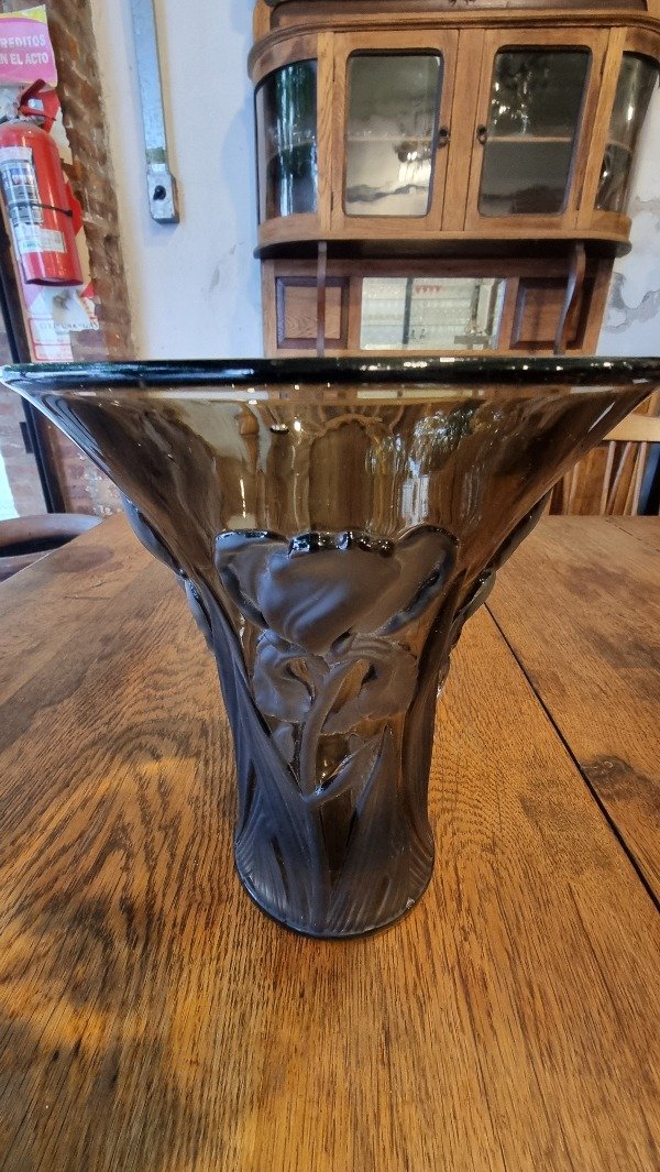 Florero Art Deco en cristal esmerilado tallado. CON DETALLE DE SALTADO EN BOCA (VER FOTO 2)