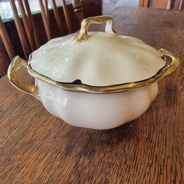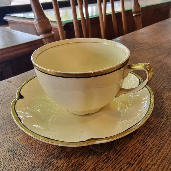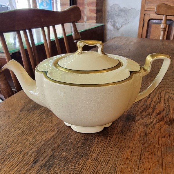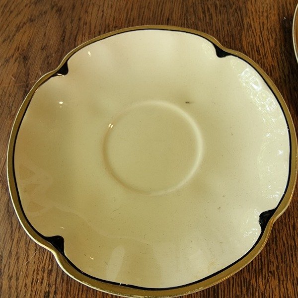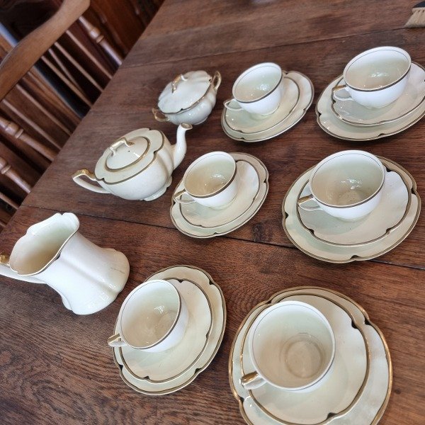 Consta de 6 tazas con sus platos , 6 platos de postre , Azucarera , Lechera y Tetera.